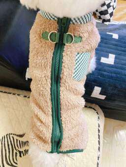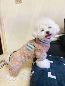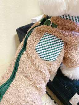 とても可愛い四脚の服です!背中にはジッパーがあり、とても便利です〜ただし、犬の毛を引っかけないように注意が必要です。生地も厚く、デザインも素敵です〜