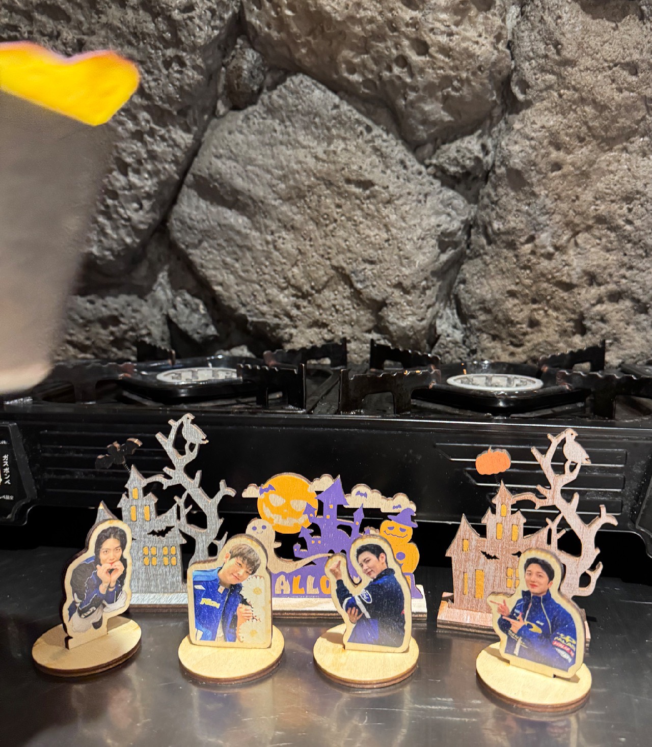 アクリル系商品、クッション、ブランケット、バッジ、ミラー、マグカップ、スウェット、応援タオル、時計、記念チケット、ハンコ、名前シールなどがあります。