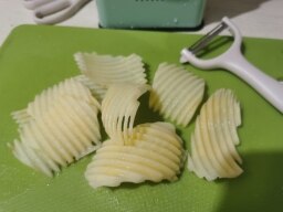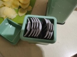 4種類のブレード:角切り 約3mm、スライス厚み 約2mm、スライス 約4*1.5mm