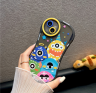 【くびれ】カラフルフモンスター達の半透明iPhoneスマホケース|ラウンドデザインが特徴!可愛いモンスター達がぎやかに集まってる!