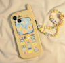 「iPhone 7~13対応」ンテナ古いレトロな携帯電話形ストラップ付きスマホケース|懐かしき、ガラケーが面白い!チーズ風色合いにが可愛い!
