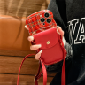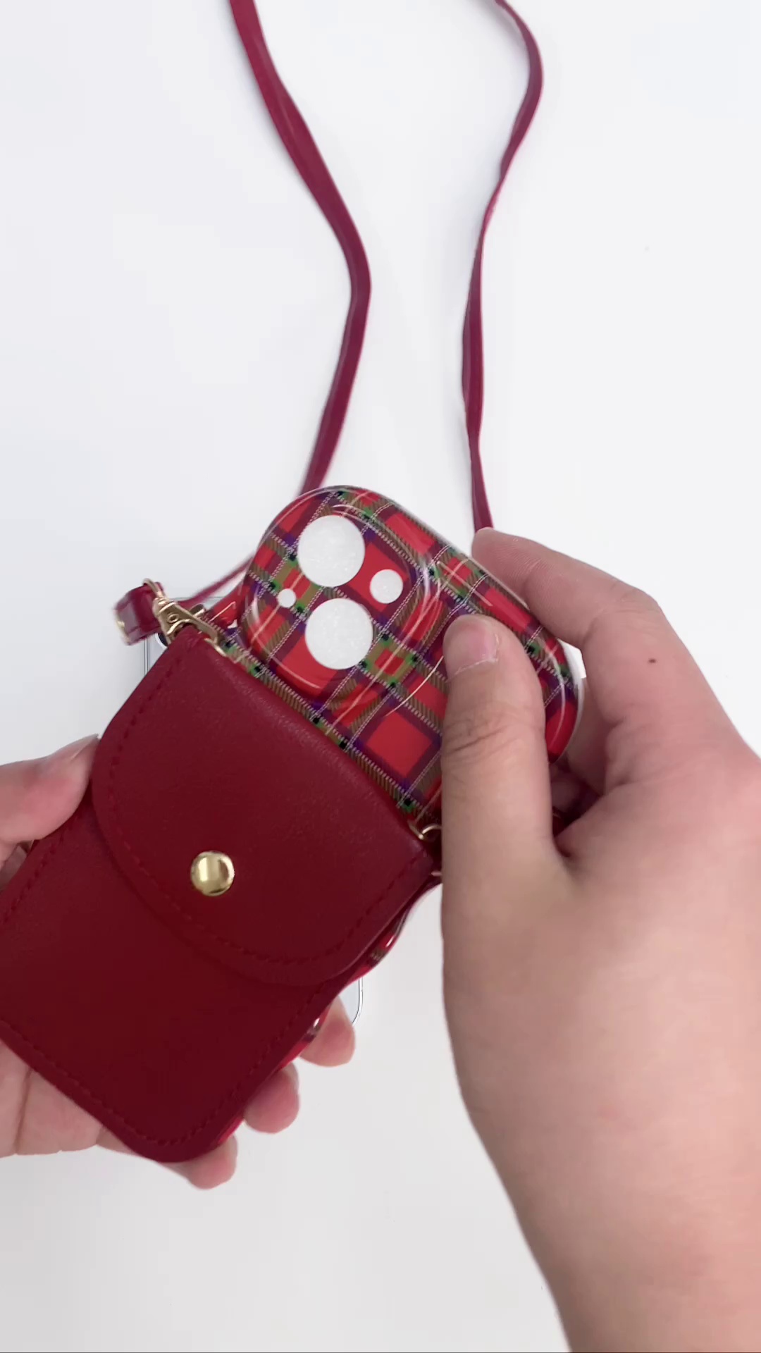 大人っぽい赤いチェック柄iPhoneケース|実用性と見栄えを組み合わせた斜め掛け可能な小銭入れのあるケース