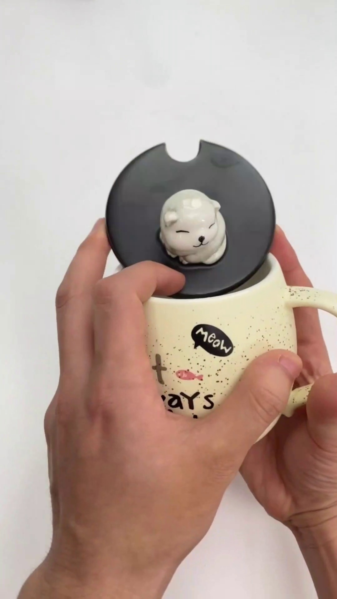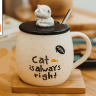 かわいい猫ちゃんの蓋付きマグカップ|猫はいつでも正しい!蓋に微笑んでくれる猫ちゃん!木製のカップマット付き!