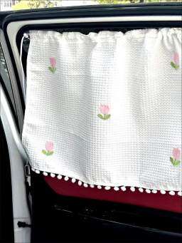 カーテン式日よけシェード |華やかな花柄で車内をおしゃれに!