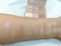 他の特徴的なアイシャドウパレットのケースはキラキラしていて、流れるようなデザインで本当に美しいです。とても女の子らしいです。実際の色はアイシャドウとしてもチークとしても使える万能な日常使いのカラーです。