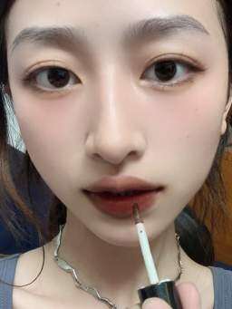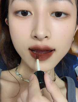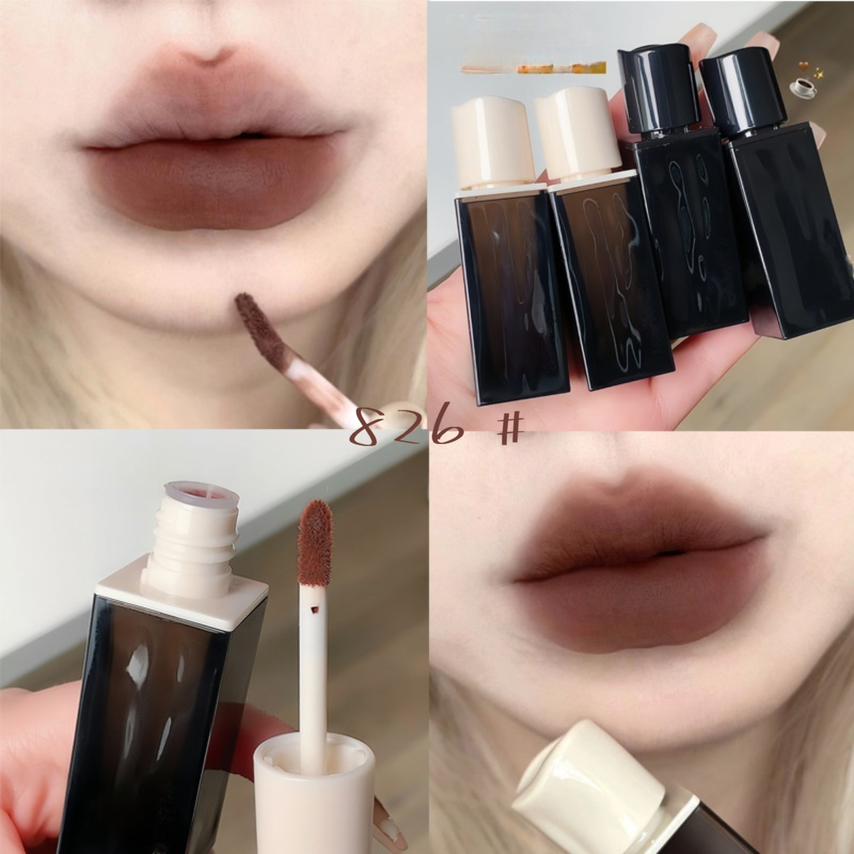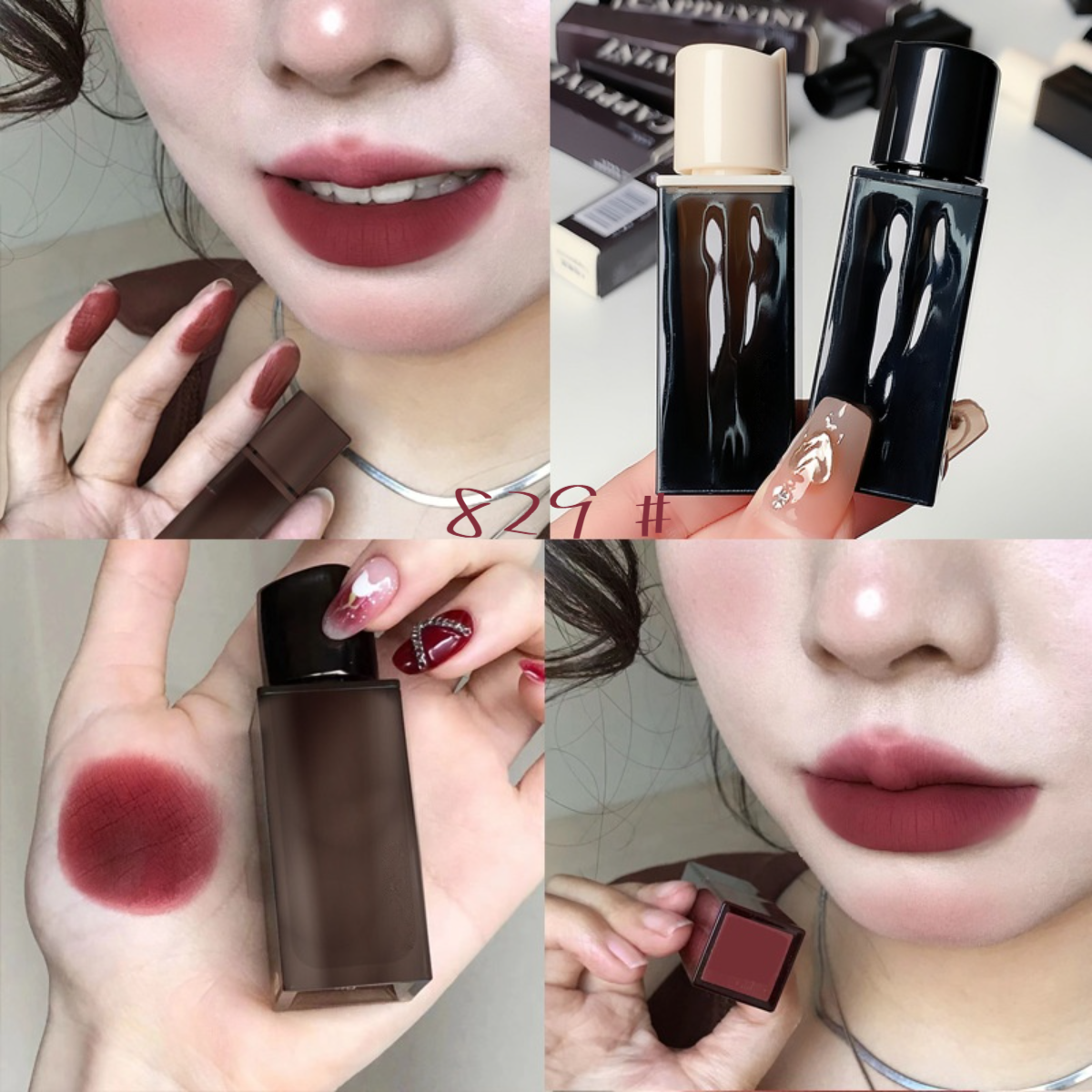 リップグロスは淡いチョコレートの香りがします!写真と色の差はありません、超暗い色で白く見えます、リップスティックの質感はベルベットのようなマットで、とても滑らかで乾燥しません、口に塗ると大人っぽい効果があります!