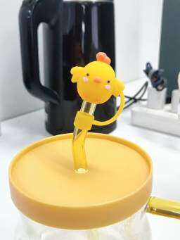 ストロー用ほこり防止キャップ|ケーキ色・茶杯の形・かわいいデザイン・口径10mm・ストロー付き!