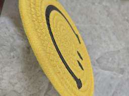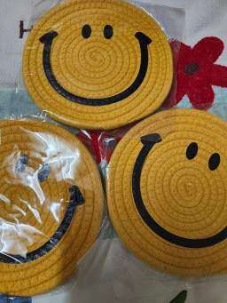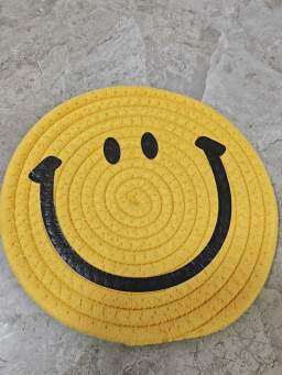 綿糸織りのコップ敷き|イエロー・笑顔コースター・INS風・断熱性に優れなので、テーブルを高熱から保護!【直径18cm/15cm】