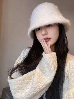 帽子はふわふわでとても快適です。デザインも自分にはとても満足しています。被ると本当に顔が小さく見えますので、頭が大きい家族の方々も購入してみてください!手触りも柔らかく、本当にとても暖かいですし、毛も抜けませんので、非常に実用的です。