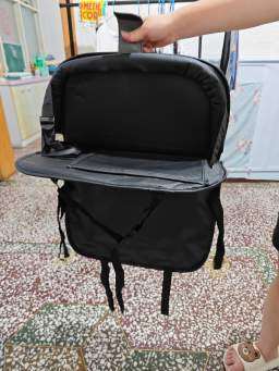 7goodsの商品のベルトは全部ペラペラで薄いのか? 薄過ぎて長さ調節してもすぐ長くなっちゃって意味ないし、カンからすぐ抜けるし、使いにくい。 テーブル部分にはベルトが付いてるけど、そのベルトもペラペラときたもんだから甘いもの乗せられない。 テーブルがバウンドするから走行中は使い物にならない。 結局ティッシュボックス入れる所しか使ってない