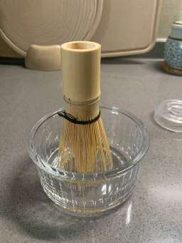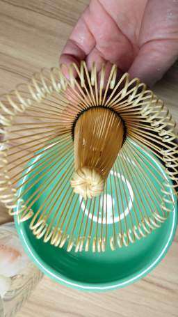1.新しい茶筌を使い始める時はたらいやボウルを使って軽く水洗いをし、その後お湯で湯通し(茶筌通し)をして下さい。