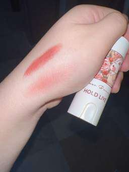 全体的な評価は、とても素敵な色で、ケースも素敵です。香りもあり、とても気に入っています。私はずっとHold Liveの化粧品を買っています。以前に買ったアイシャドウパレットはまだ使い切っていません。保湿効果があり、唇に塗った感じも私が望んでいた色です。実物の色も素敵ですね。
