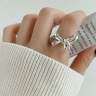 指輪|調節可能・韓国風・シルバー・シンプル・リボン・リング・女性用・レトロ・ファッション・不規則・パール・オープン・指輪・トレンド