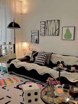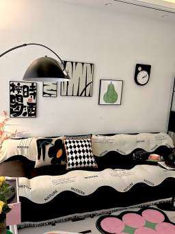やっとソファにソファカバーをかけました!! 黒と白を選んで、生地がとても快適です。スタッフのお姉さんがおすすめしたサイズもちょうど良かったので、一発で完璧です。ナイス!