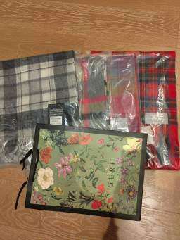 素材はウールで、外観の色合いがとても素敵です。全体的に評価が高く、柄もとても素敵です。冬にぴったりです。