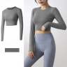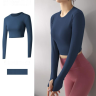 フィットネスジム・女性・ヨガ・ランニング・アメリカスタイル・伸縮性・長袖・ショート・ベリーボタンノースリーブ・タイト