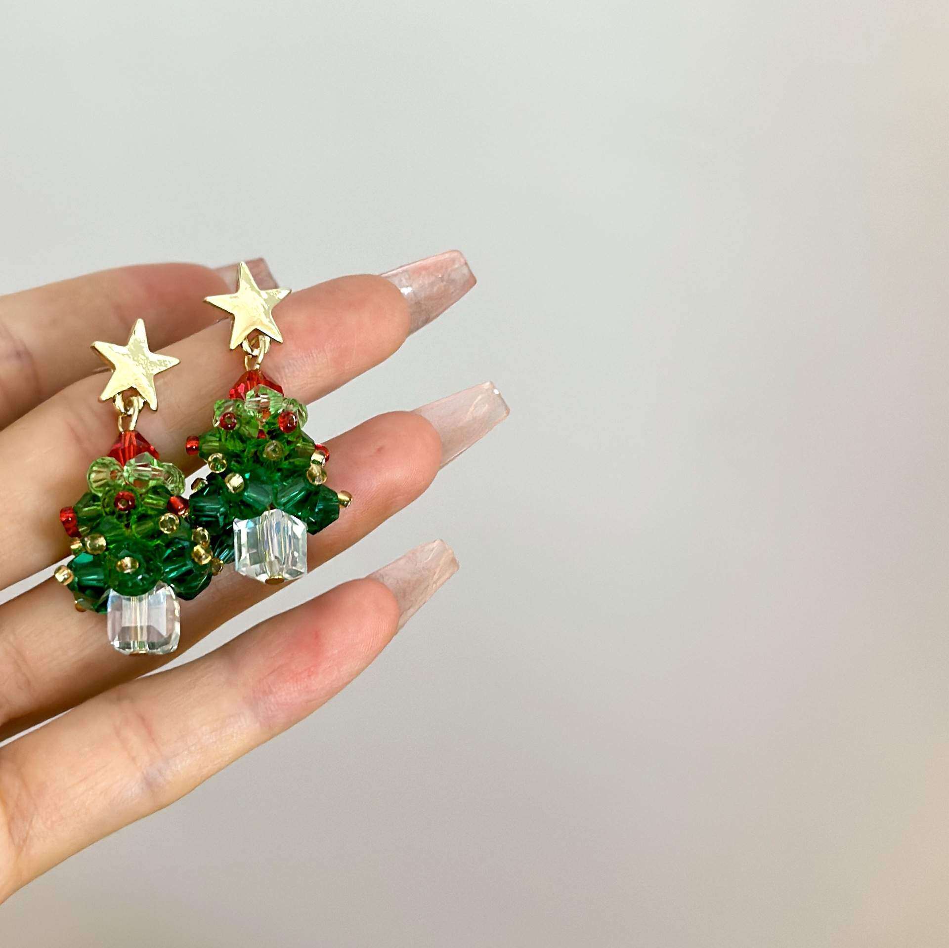クリスマスツリーピアス|手作り・キラキラ・クリスマスギフト・イヤーアクセサリー