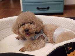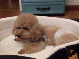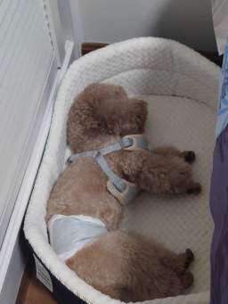 フレブル14kgには着丈が長すぎた(´・_・`)でもふわふわで寒い日とか家の中ではいけそう(o・・o)/