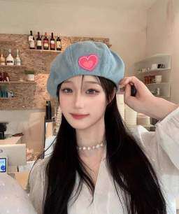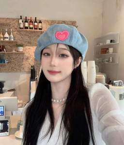 デニムベレー帽56-58cm|韓国風・ゆったり・小顔効果・パッチ付き・レディースファッション