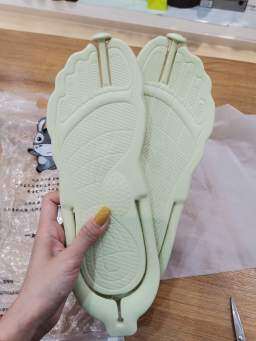 ゴムにはほとんど匂いがなく、これは少し驚きです。とても軽くて便利です。普段は36を履きますが、スリッパは1サイズ大きくても問題ありません、