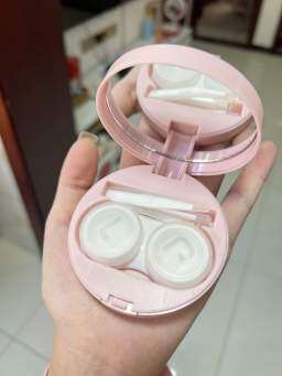 中に洗浄液を入れれる容器が入っているところが大きい!かわいいし、このひとつでワンセット揃うので旅行先でも使えるし出先で目が痛くなっちゃって外したい時にも助かる!
