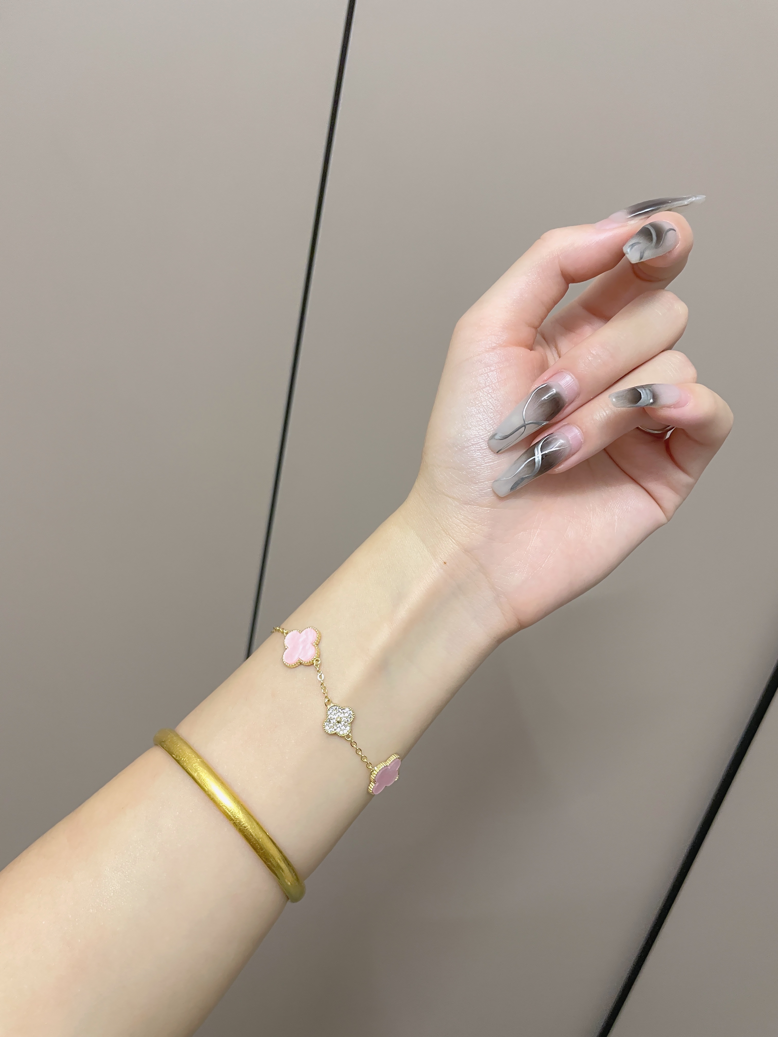 手链を受け取りました。とても精巧で、つけると手首が細く見えます。このピンク色はとても優しく、白く見えます。ダイヤもとても輝いています。手链は満点です!