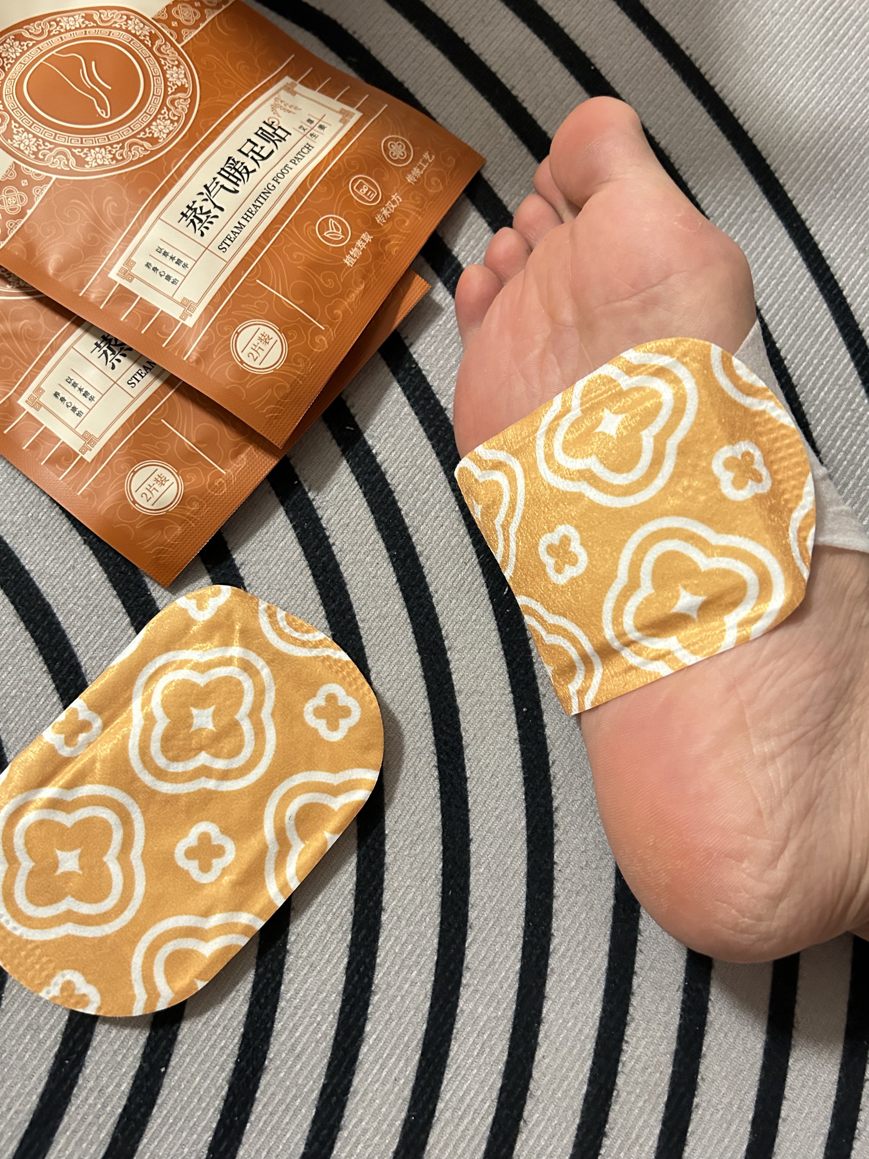 足がよく冷えるので、この足温パッドを買いました。とても便利で、粘着ではなく、伸縮性のあるバンドが付いているので、直接装着するだけで温かいです。
