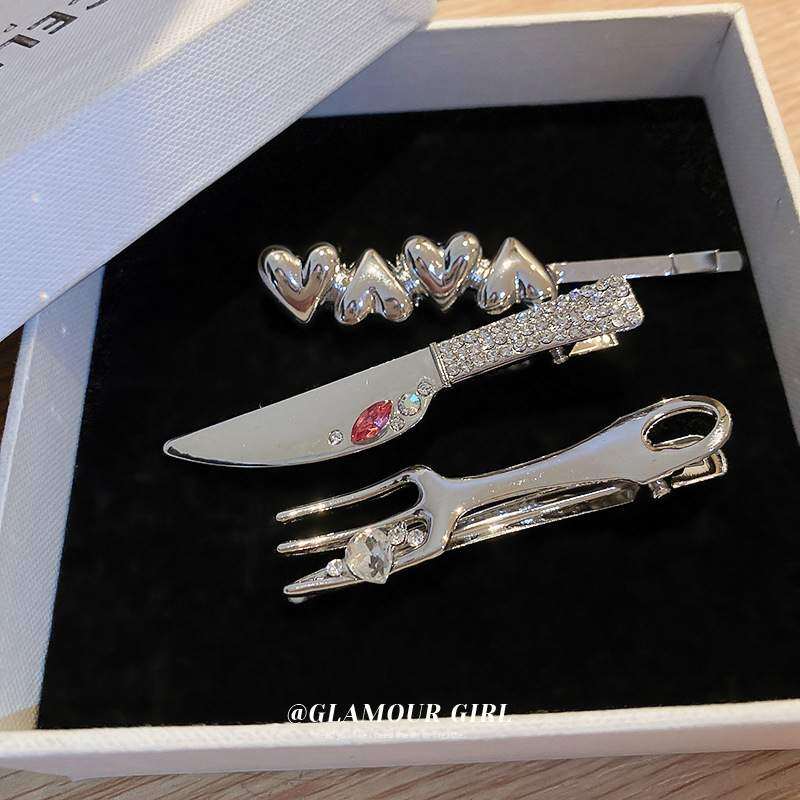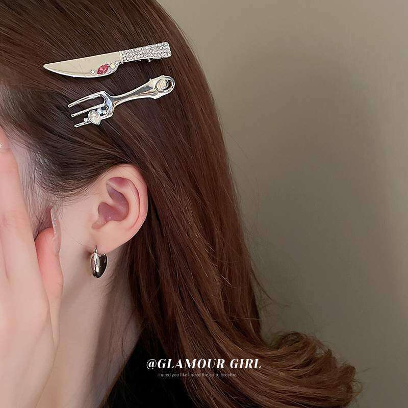 BYSPヘアクリップ・個性的・魅力的・ファッション・シンプル・人工ダイアモンド・ナイフとフォーク・カモのくちばし・韓国っぽ