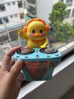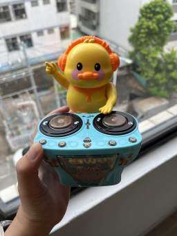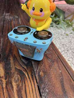可愛くて、笑っちゃう💖結構、音が大きいかな?単三3本使います。置くと、DJしながら移動するので、持って動画撮りました😅広告動画の曲は無いかな?5曲くらい。