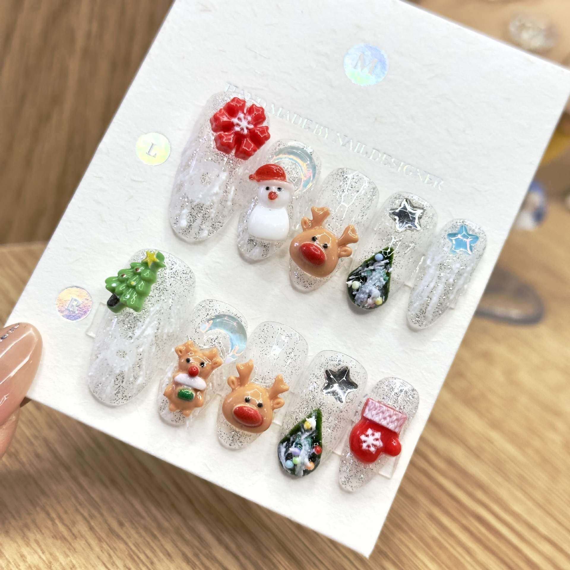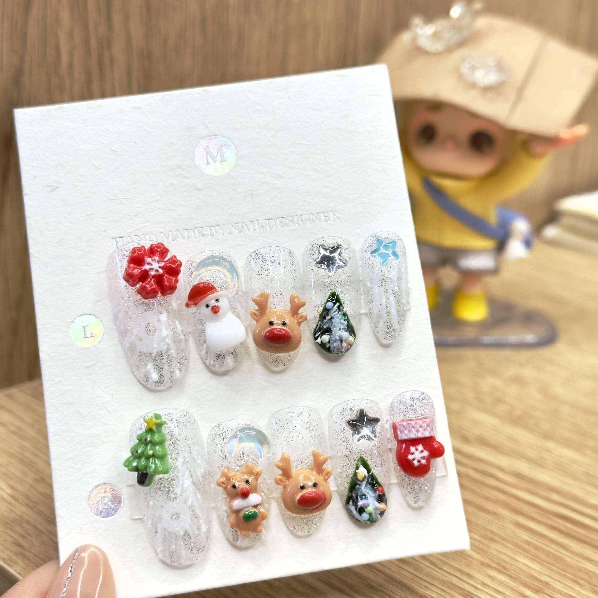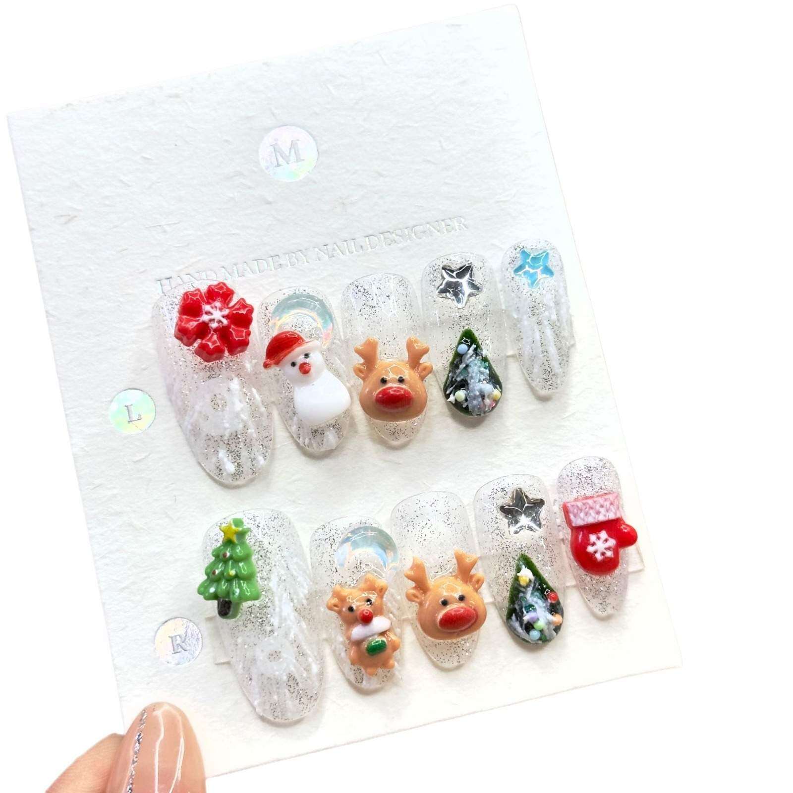 ネイルチップ・ネイルアート・秋冬・カートゥーン・かわいい・シカ・クリスマスツリー・着用・クリスマス・新作・純・手作り