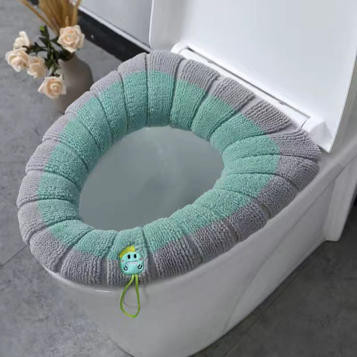 ふわふわ伸縮性便座カバー3枚セット(取っ手の柄はランダム出荷)|ハンドル付き・暖かい・秋冬用・取付簡単・水洗い可能