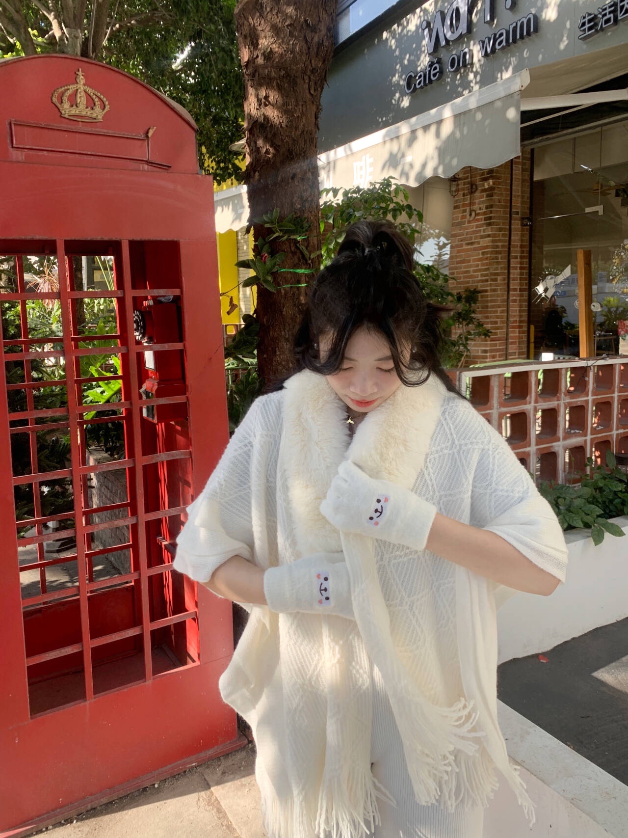 手袋は本当に大好きです。親指と人差し指の小さな穴のデザインは、スマートフォンの操作に支障をきたしません。暖かくて楽しい、両方を兼ね備えています。色合いもとても良く、白く見えます。クマのデザインも可愛さを増しています。大好きです~