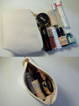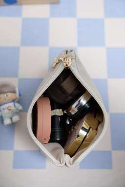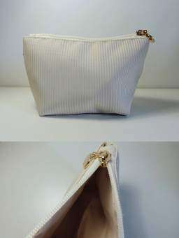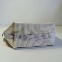 出かける際に必要な小さな収納袋で、場所を取らずに小さなものをきちんと収納することができます。透明でないデザインなので、生理用品の収納にも使えますし、全体的な容量も十分にありますので、持ち歩きの化粧直し用のポーチやデータケーブルの収納にも使えます。バッグの生地は縦縞模様で、テクスチャー生地と言われていますが、全体的な手触りはとても柔らかく、私はオートミール色を選びましたが、ブルーグレーもとても素敵です。次回は別の色も購入する予定です。