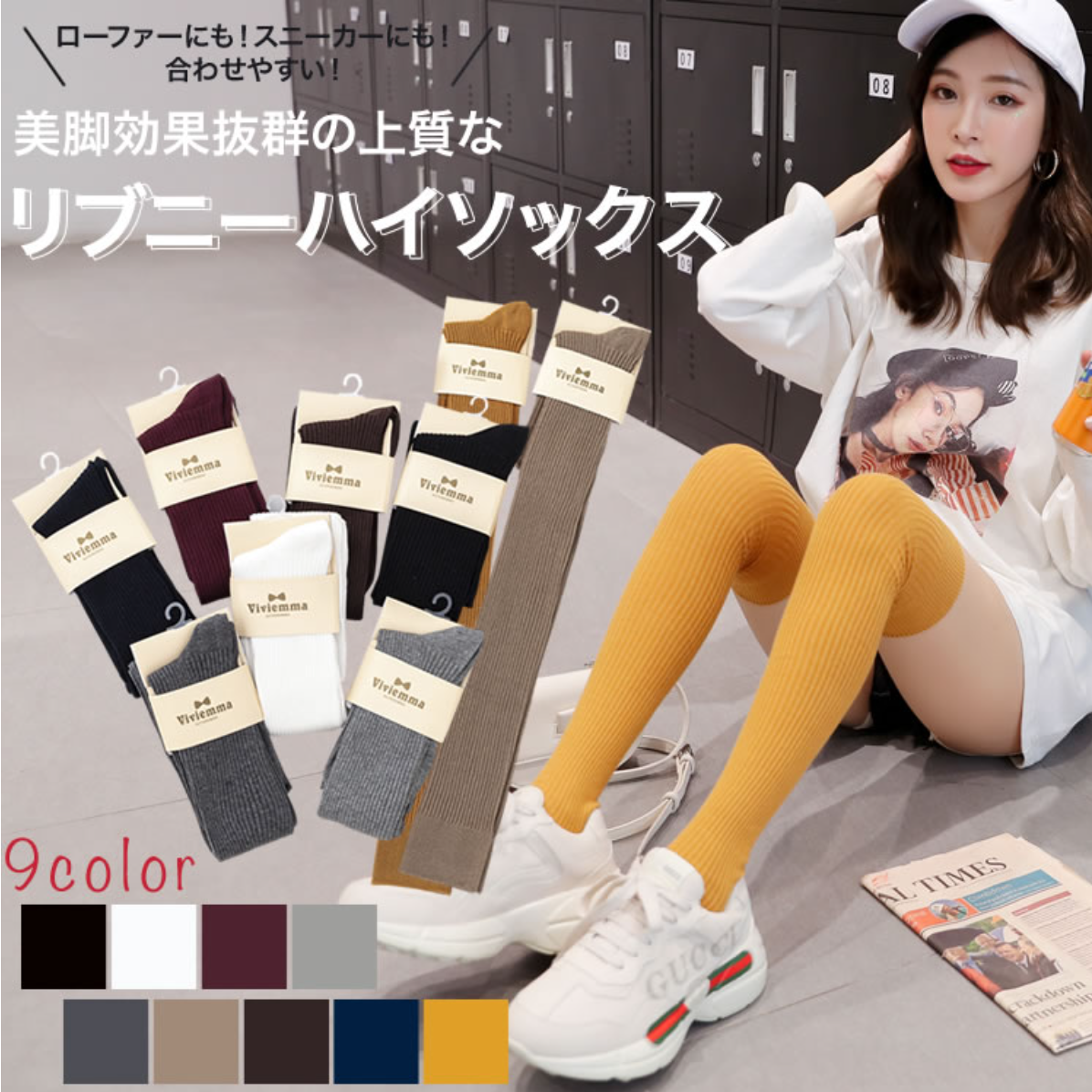 【日本国内発送】8色の美脚効果抜群の上質なリブニーハイソックス|レッグウェア・ガールズソックス・無地・ストレッチ・美脚 ・ポイント消化