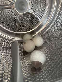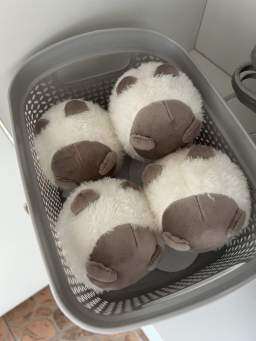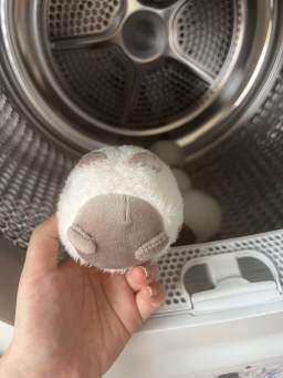 このパッケージは大好きです❤️、環境に優しいプラスチックは使われていません、紙筒に入っています。全体的にとても気に入っています、乾燥機に入れるだけでとても便利です〜写真は1回使用した後(高温乾燥)、Appleのリアカメラで洗濯室で撮影しました(窓がなく、白熱灯の暖色系の光の下で撮影)。可愛い外観の小さな羊です〜使用体験の後もしっかり使います!乾燥機で衣類を乾かすのは彼らに頼ります!品質は本当に非常に良いです、現時点では品質に非常に満足しています。糸くずなどもありません〜容量の大きさは私の手と比較するとわかります〜