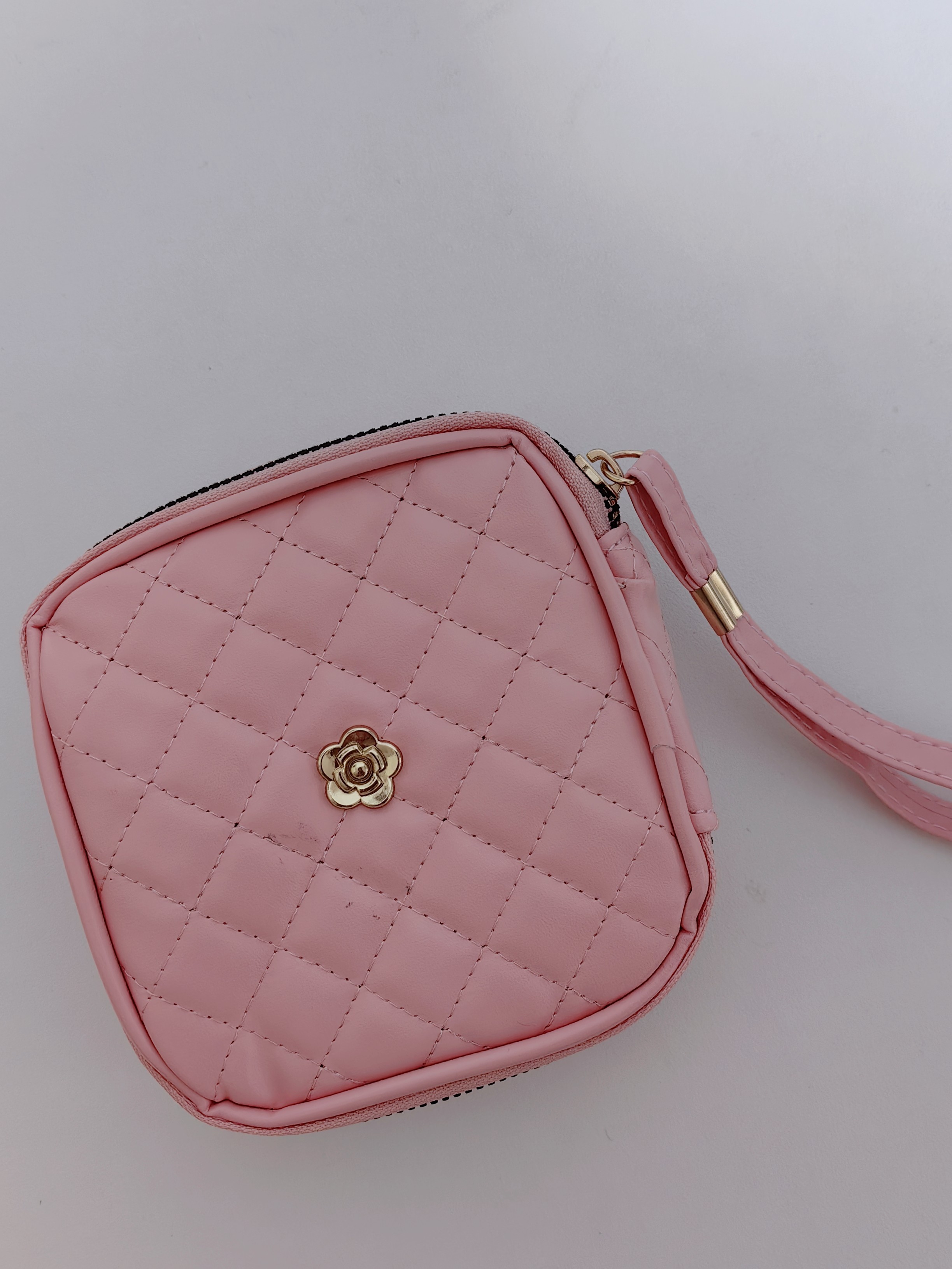 ピンク色がとても可愛くて、革の質も良いです。この小さな化粧ポーチは外出時に便利です。