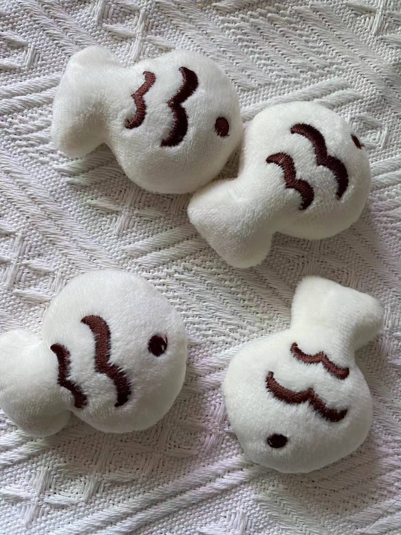 小魚のデザインはとても可愛いです。ふわふわで触り心地がとても良く、作りも細かいです。使いやすいです。
