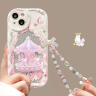 【スマホグリップ付き】透明・木馬・可愛い・iPhoneケース|スタンド・チェーン付き・iPhone 15/14/13/12/11/SE
