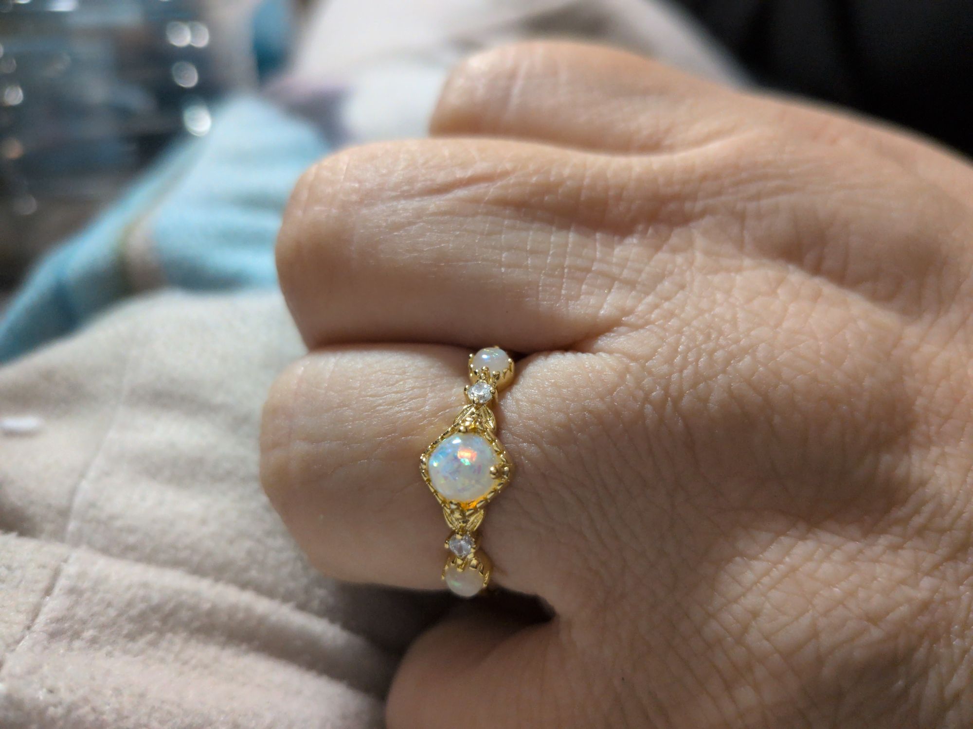 『10月の誕生石』天然石リング|レディース向け・調節可能・オパール・シンプル・おしゃれ