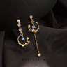 イヤリング|非対称・ジルコニア・ゴールド・月・レディース・いやりんぐ・キャッツアイ・耳飾り・簡単脱着・痛くない・ノンホール・エレガント