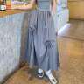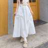 c'est c'estロングスカート|白いリボン付きハーフスカート・夏・薄手・高ウエスト・Aライン・垂れ感・スタイルアップ・小柄・服
