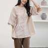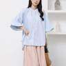 デザインはクリーンな印象のスタンドカラーにボリューム感のあるフレア袖デザインで着映えるブラウスですね!