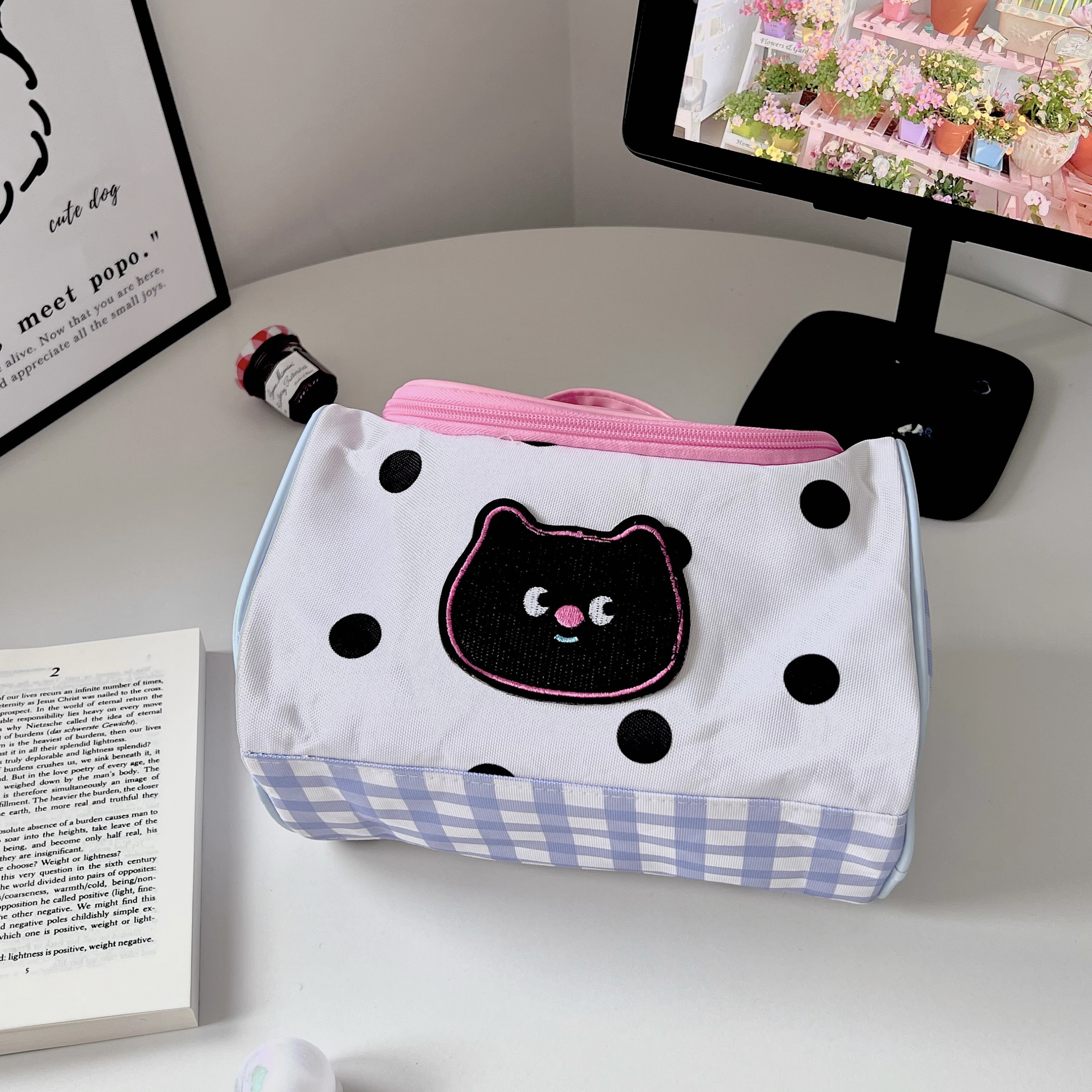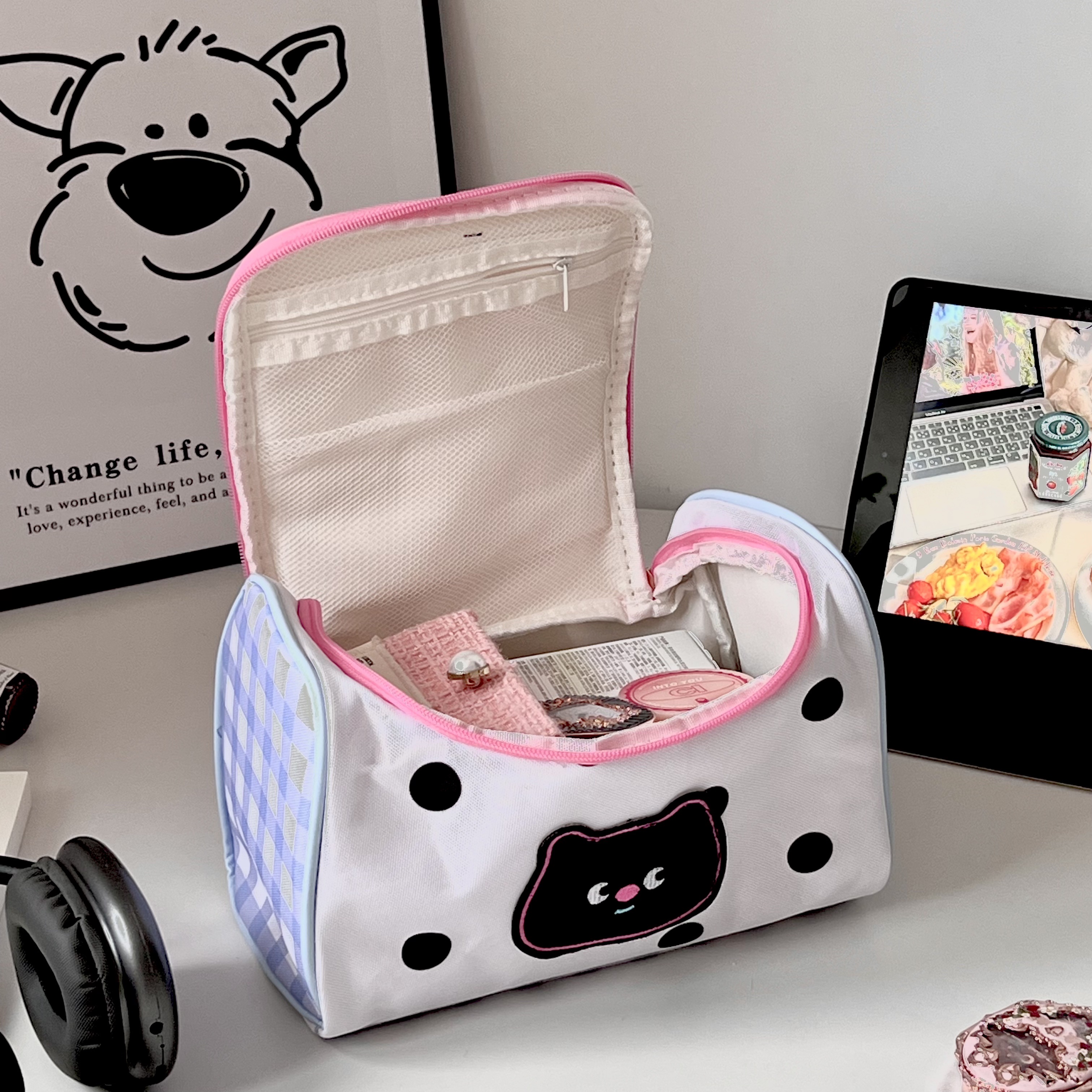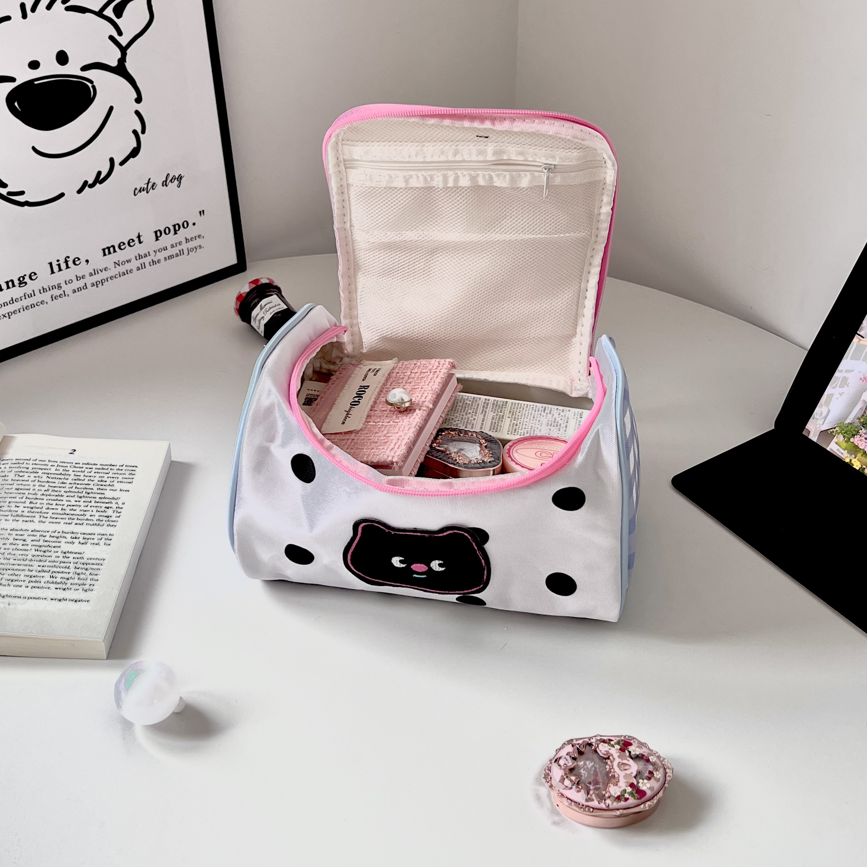 化粧ポーチとしてとても良いです。外出する際に持ち運びが便利で、大容量でたくさんの化粧品を入れることができます。手提げもでき、クマのプリントもとても可愛いです!