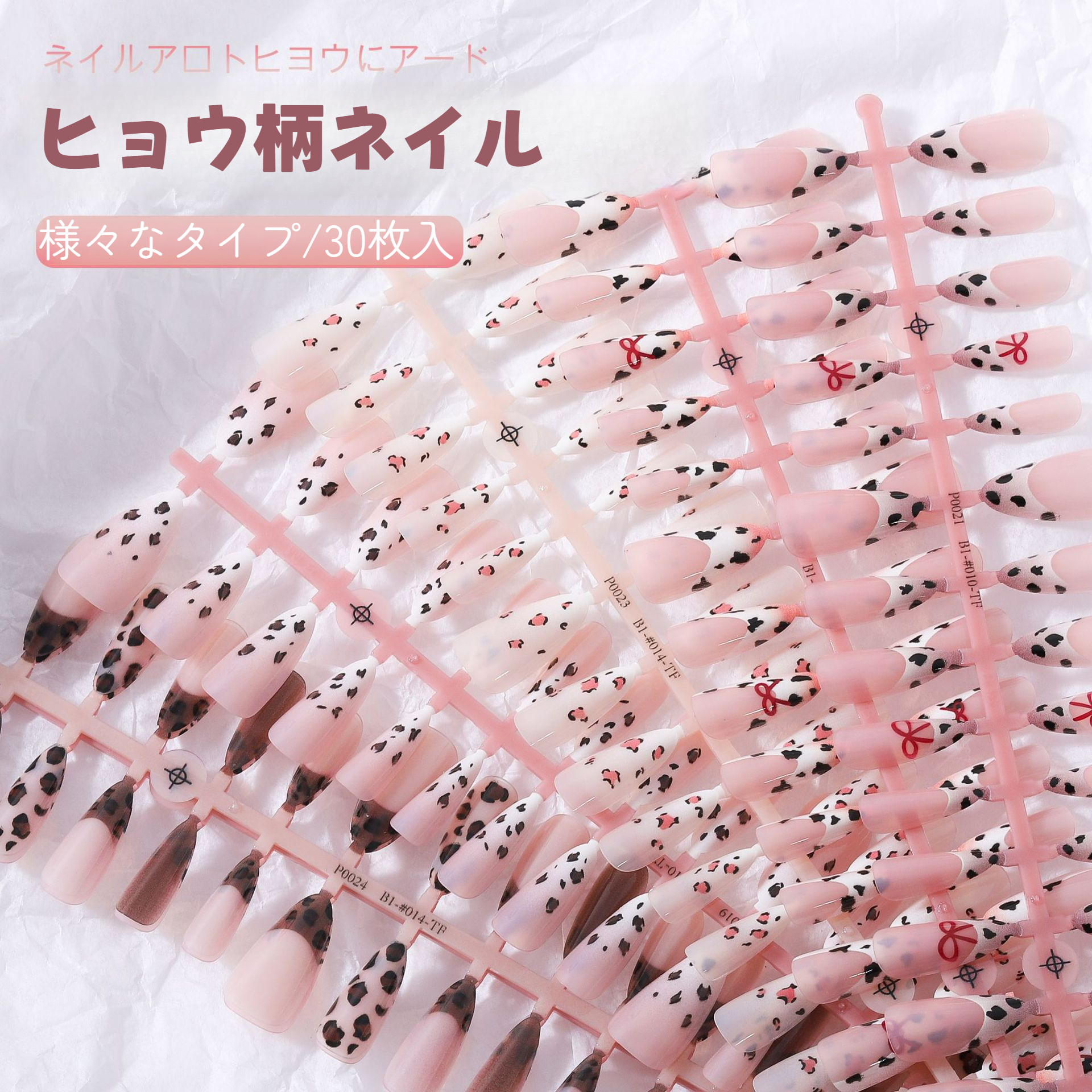 【30枚入】ネイルチップ|手作り・グラデーション・アーモンド型・ヒョウ柄・カラーブロック・ins風・セクシー