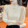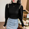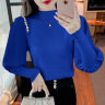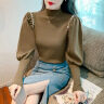 Yippeeトップス|ロングスリーブ・パール・パフスリーブ・ハイネック・ニット・セーター・エレガント・秋