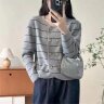 on% closetカーディガン|ストライプ・ダブルボタン・クルーネック・ファッション・スリムフィット・ニット・アウター・秋冬