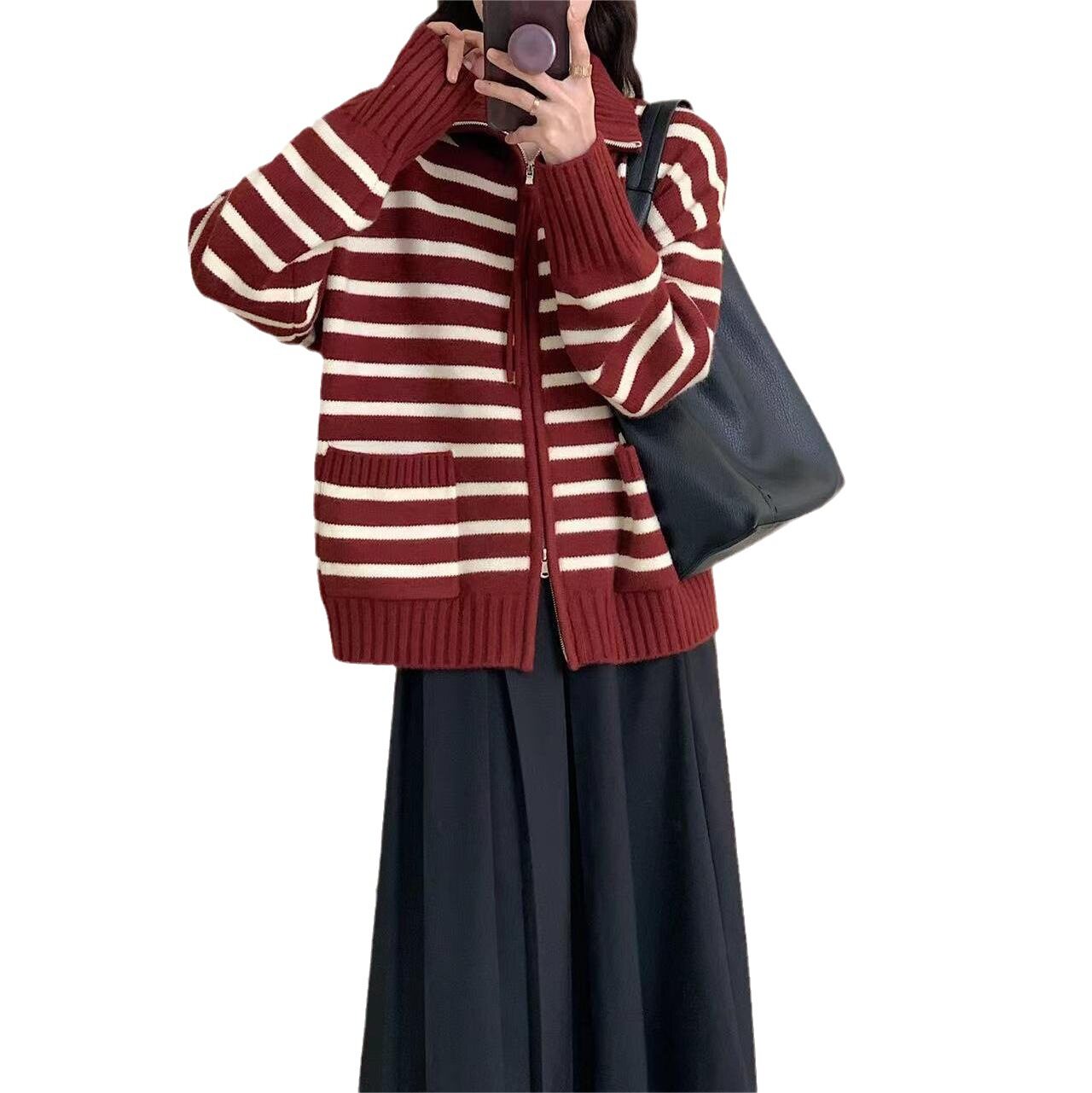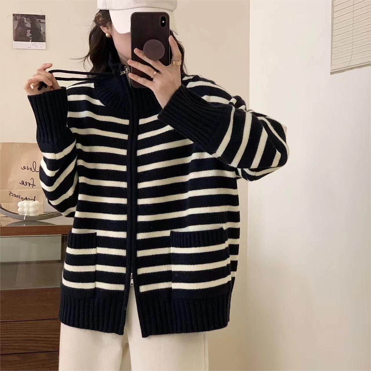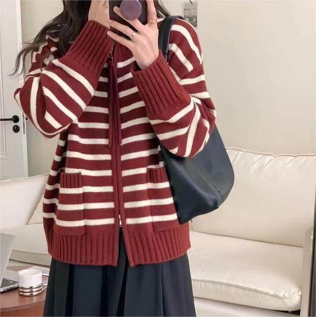 on% closetカーディガン|ダブルジッパー・ストライプ・ニット・ダブルポケット・秋冬・マニアック