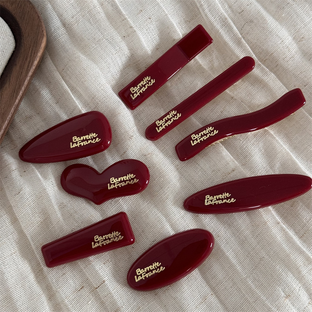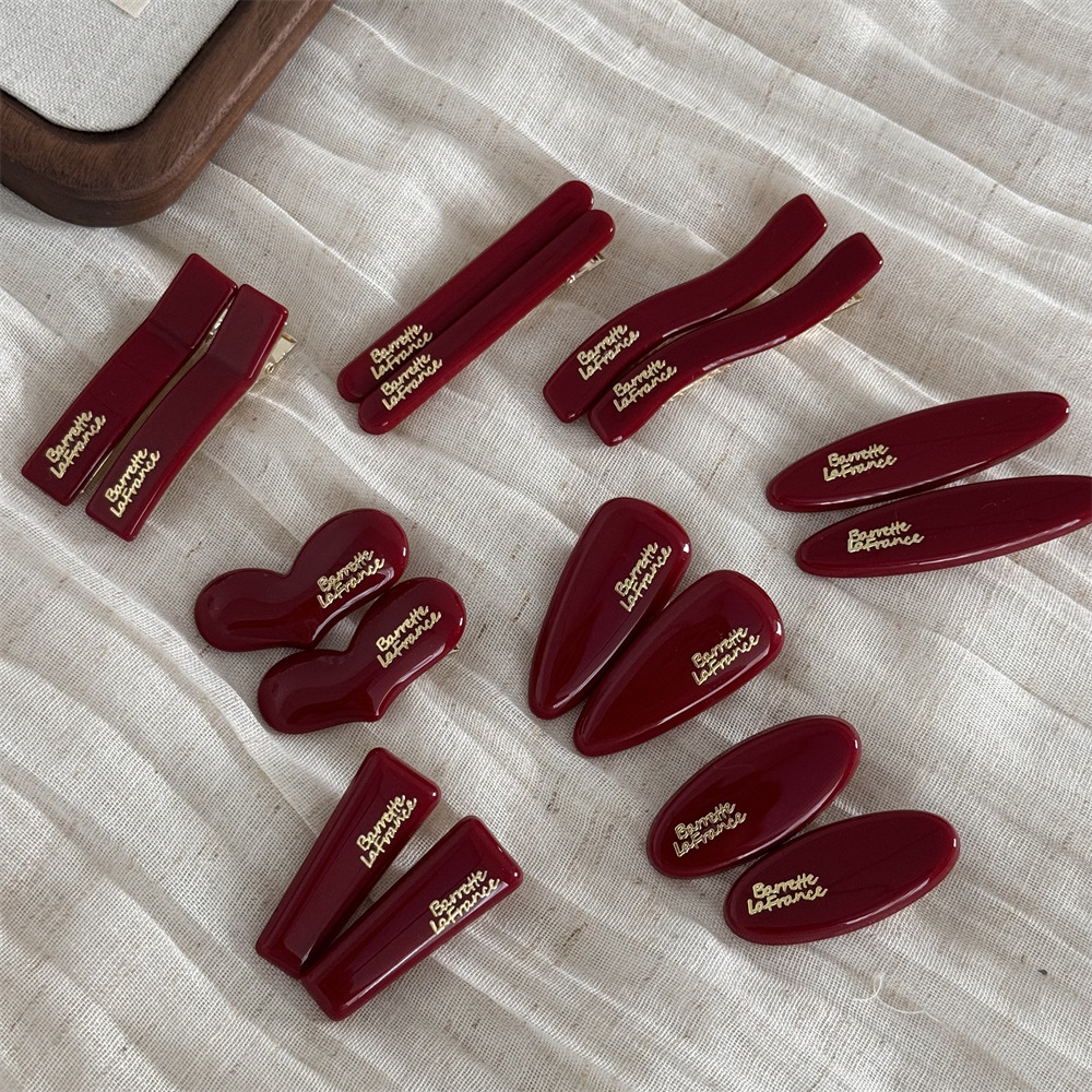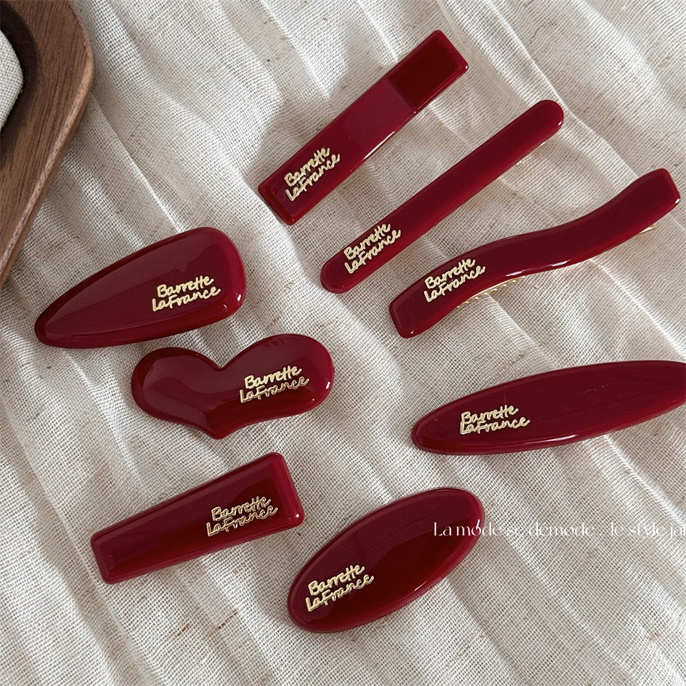ヘアクリップ|赤系・金色ロゴ・アかわいい・小型・ヘアアクセサリー