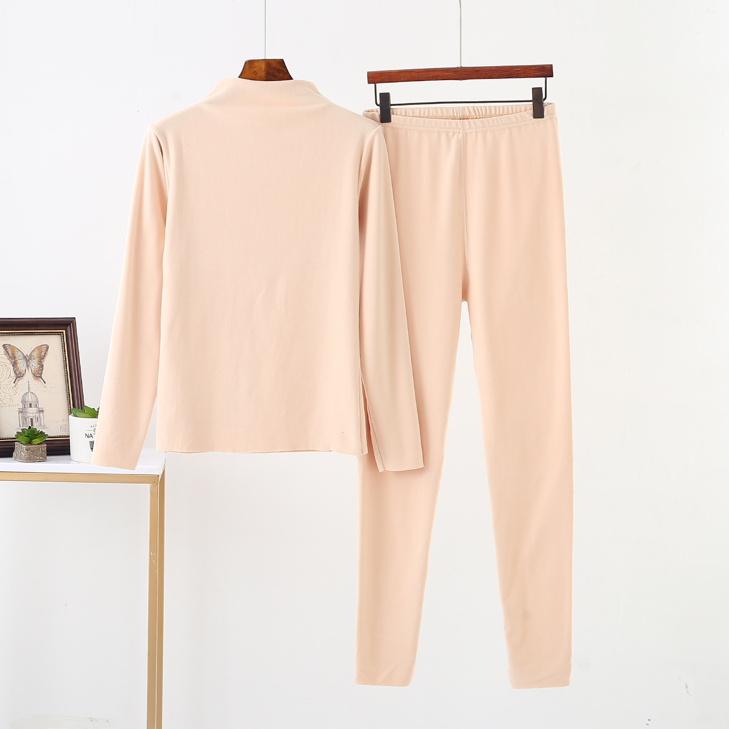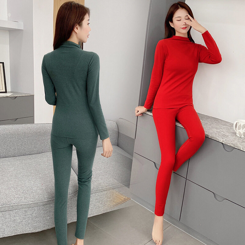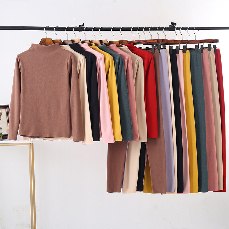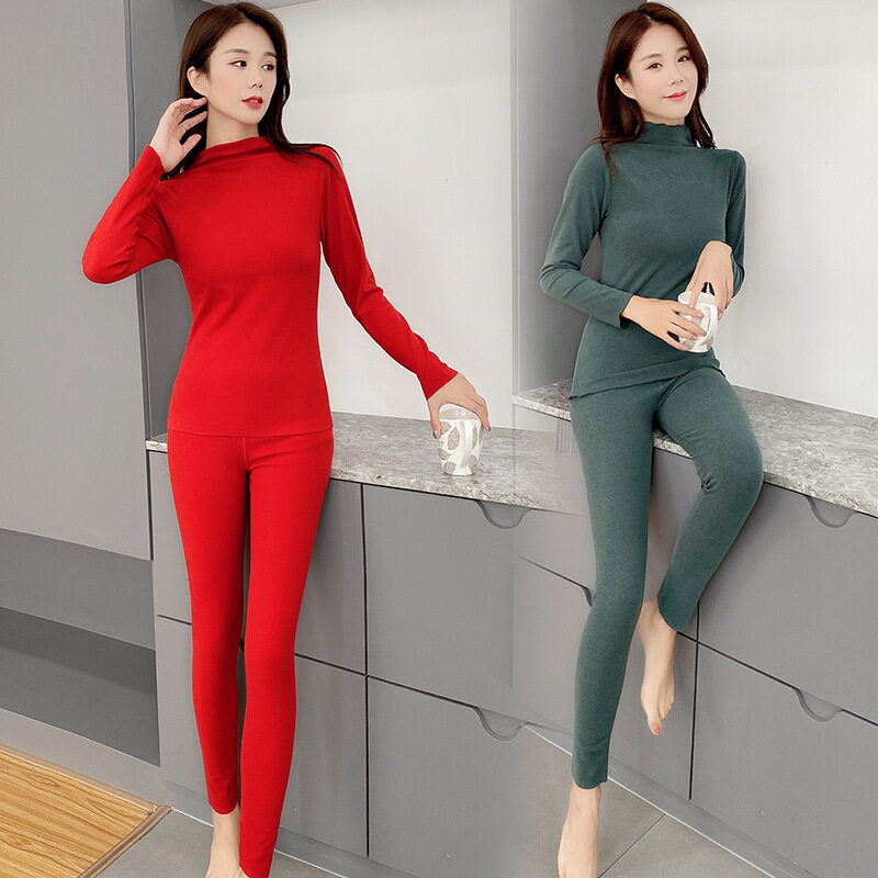 吉インナーセット|シンプル・秋冬・暖かい・ハイネック・スリムフィット・無地・2点セット