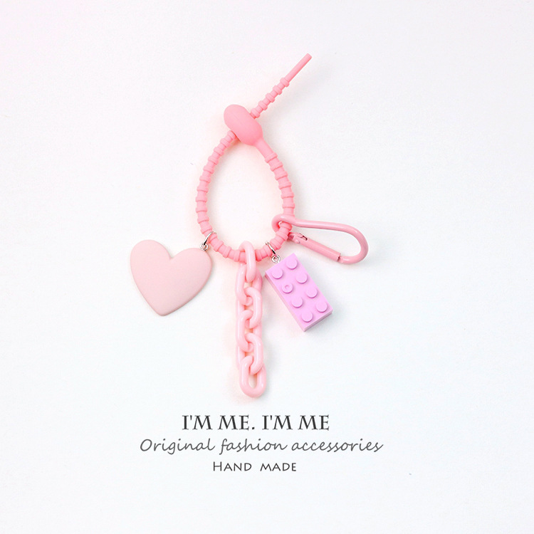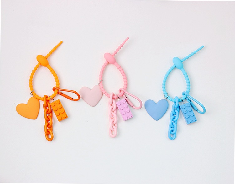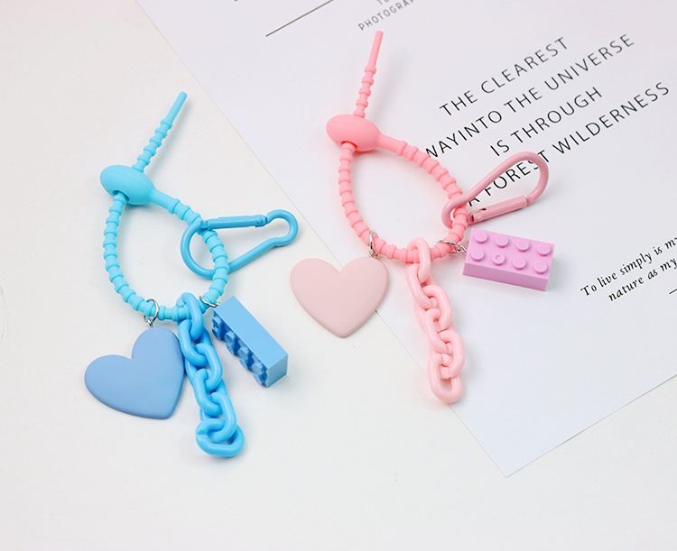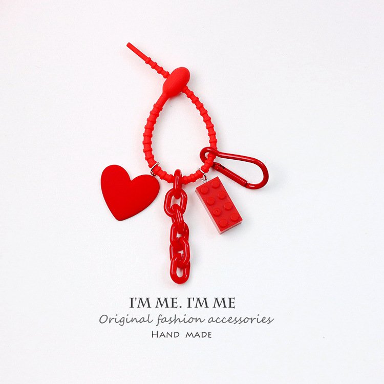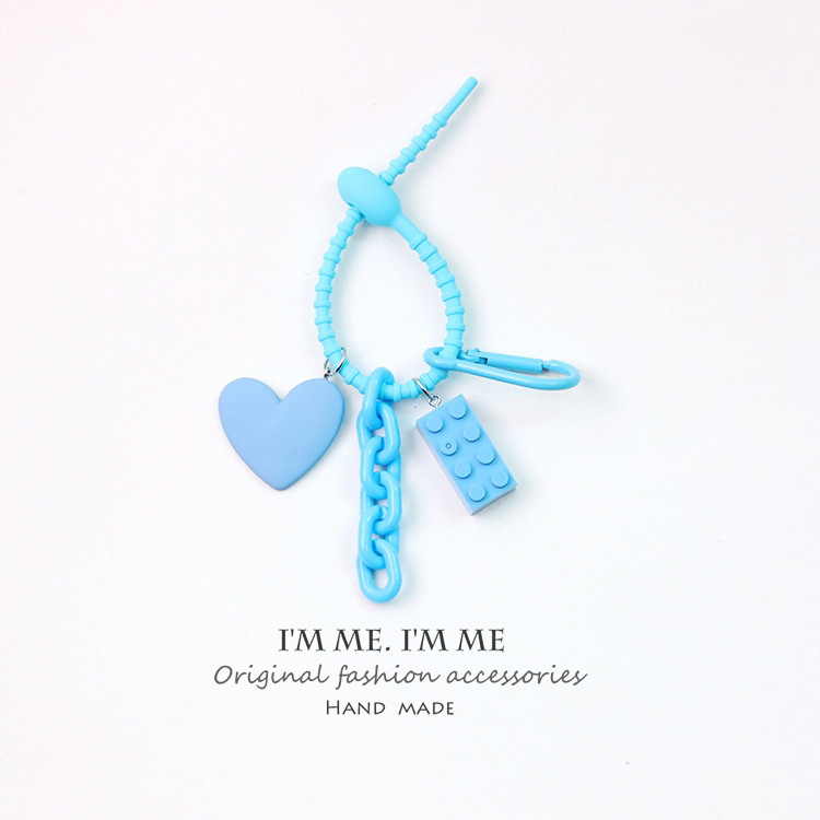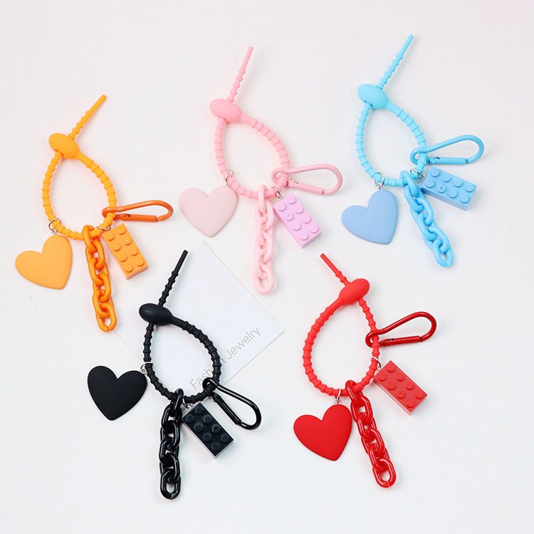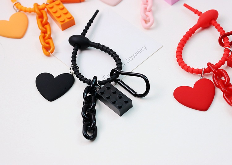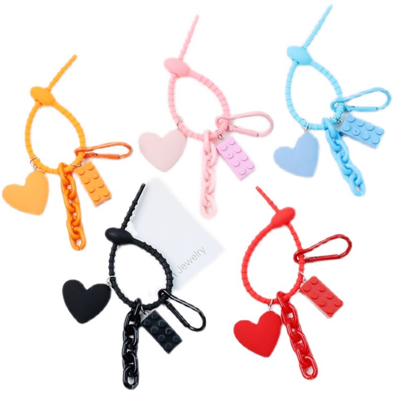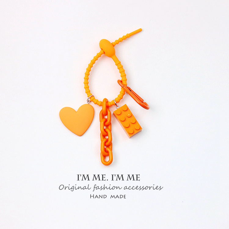 ハート型キーホルダー|カートゥーン・車用・キーチェーン・かわいい・韓国風・カラーブロック・バッグチャーム・ロックキーリング